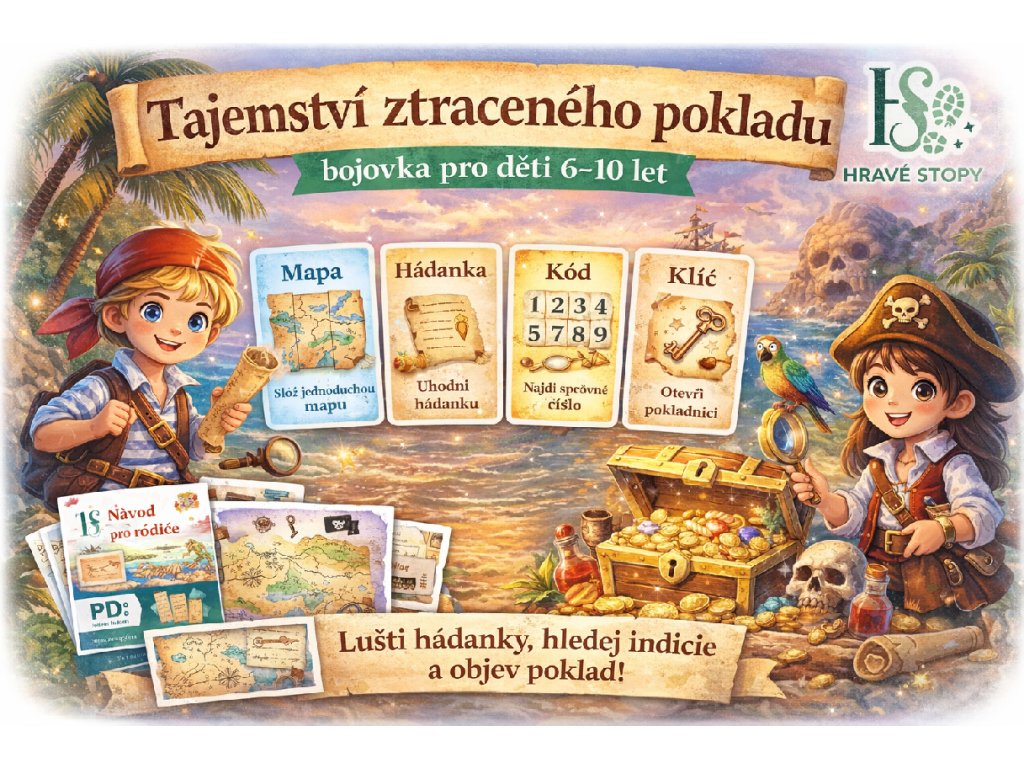 Děti se vydají na dobrodružnou cestu plnou stop, hádanek a úkolů. Postupně budou odhalovat indicie, které je dovedou až k ukrytému pokladu.